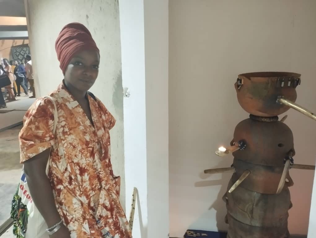 « Qui dites-vous que je suis ». Tel est le titre de l’œuvre de Melinda Fourn, Artiste Franco-beninoise, qui fait de la sculpture depuis maintenant 10 ans. « Mon œuvre est composée de plusieurs matériaux tels que la céramique, le bronze et le perlage. En venant ici à Ouagadougou avec ce thème, le feu des origines, le travail de la céramique, du bronze était une manière pour moi de mettre en avance ce feu, cette chose qui nous consume, qui nous permet de passer de l’état solide à liquide…», a-t-elle expliqué.