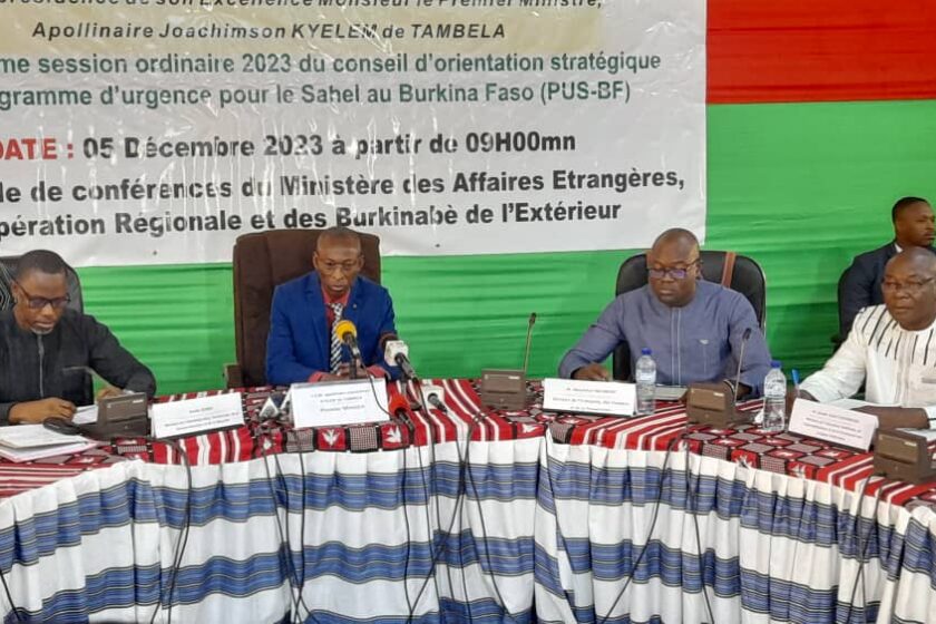 Le conseil d’orientation stratégique du Programme d’urgence pour le sahel au Burkina Faso (PUS-BF) a tenu le mardi 05 décembre 2023 à Ouagadougou, sa deuxième session ordinaire sous la présidence du Premier ministre, Apollinaire Joachimson Kyélem de Tambèla. L’objectif de cette sessions est d’examiner l’état de mise en œuvre du Plan de travail annuel budgété (PTAB) 2023 du programme et de définir les priorités pour la mise en œuvre des interventions.