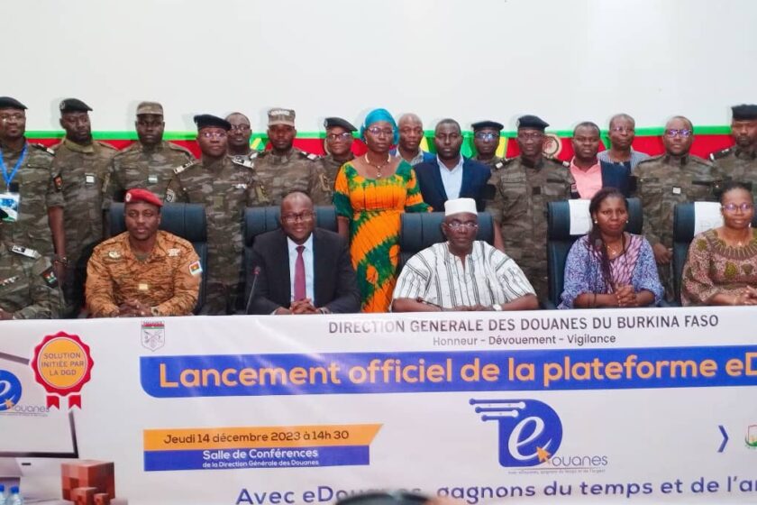 La Direction générale de la douane (DGD) a procédé, dans l’après midi de ce jeudi 14 décembre 2023 à Ouagadougou, au lancement de sa plateforme digitale « eDouanes » . La cérémonie a été placée sous le patronage du ministre d’État, ministre de la Fonction publique, Bassolma Bazié et la présidence du ministre en charge de l’Economie, Dr Aboubacar Nacanabo.