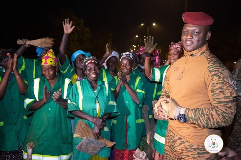 (Ouagadougou, 7 mars 2024). Le Président de la Transition, Chef de l’Etat, le Capitaine Ibrahim TRAORE a rendu une visite inopinée aux femmes de la Brigade verte tôt le matin du mardi 5 mars 2024 pendant qu’elles étaient en pleine activité sur le Boulevard Thomas-Sankara.