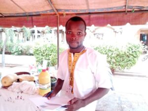 « Je participe en art culinaire, catégorie boisson. Je fais aujourd’hui une boisson appelée dans notre langue locale Margnimpiéma. C’est du Gourmatchema. Ça veut dire eau blanche d’une femme qui vient d’accoucher. Elle permet d’enrichir le lait du nouveau né. Pour la faire, on a besoin du petit mil, de l’arachide, du pain de singe, du sucre ou du miel, et puis les feuilles d’acacia Sénégal. On peut la garder au frais pendant longtemps. Tout le monde peut boire, surtout les femmes qui ont nouvellement accouché, si elles en prennent elles auront de l’énergie toute la journée.