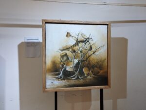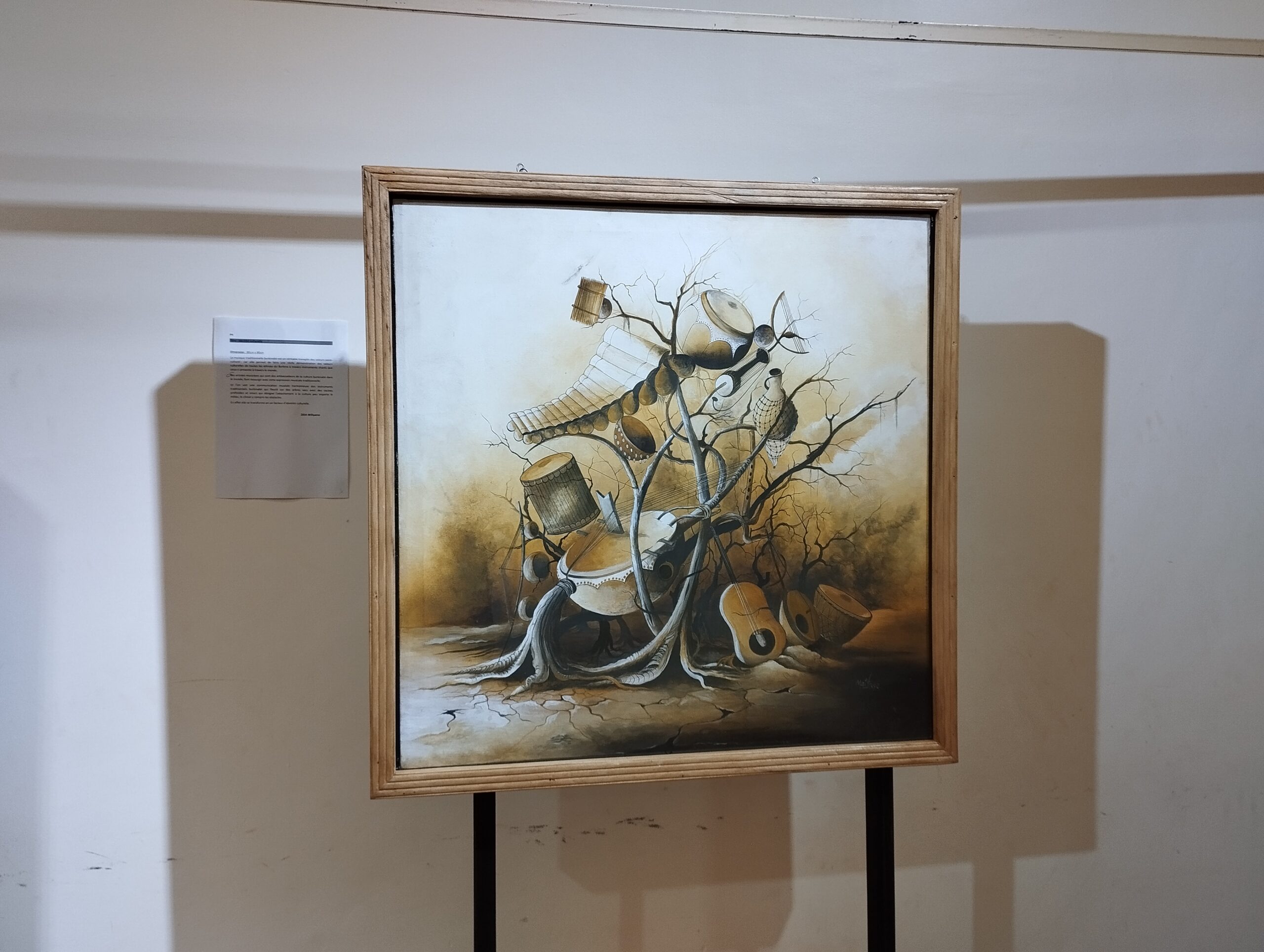 Cette œuvre est une représentation de la musique traditionnelle burkinabè qui est un véritable tremplin des valeurs socio- culturelles. Ici l’on voit une communication muséale harmonieuse des instruments traditionnels burkinabé qui fleurit sur des arbres secs avec des racines profondes et intactes qui désigne l’attachement à la culture peu importe le milieu, le climat y compris les obstacles.