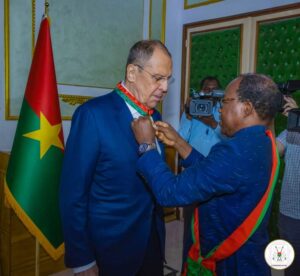 (Ouagadougou, 5 juin 2024). Le ministre des Affaires étrangères de la Fédération de Russie, Sergueï LAVROV, en visite d’amitié et de travail au Burkina Faso, a été élevé à titre exceptionnel, au rang de Commandeur de l’Ordre de l’Etalon au Palais de Koulouba, ce mercredi dans la matinée. C’était à l’issue d’une audience accordée par le Président du Faso, le Capitaine Ibrahim TRAORE.