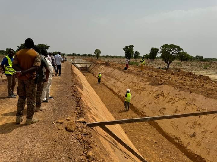 Le ministre de l’Agriculture, des Ressources animales et halieutiques, le Commandant Ismaël Sombié, a visité ce vendredi 7 juin 2024 les travaux d’aménagement du périmètre irrigué de Dourou, situé dans le Passoré. Lancés en décembre 2023, ces travaux couvrent une superficie de 865 hectares et visaient à être achevés pour le 1er juin 2024.