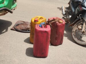 « Hier soir vers 20h lorsque je rentrais, au niveau du monument des martyrs vers l’hôpital Paul 6, j’ai croisé un bus et le conducteur était seul. Il a bifurqué rentrer jusqu’au mur du monument. J’ai garé et je l’ai suivi un peu. Après, il a démarré, moi aussi j’ai démarré mon véhicule pour le poursuivre et c’est là que je l’ai perdu de vue. Mais quand je suis revenu sur mes pas, je l’ai surpris entrain de siphonner le carburant. Ils étaient deux, il y avait une moto et trois bidons de 25 litres chacun qu’ils avaient déjà remplis. Dès qu’ils m’ont vu, le propriétaire de la moto a laissé la moto et a pris la fuite. Le chauffeur, lui, il a démarré, je l’ai klaxonné en vain, j’ai tout fait mais il n’a pas coopéré. Il a même failli écraser des gens sur la route. C’est alors que des riverains m’ont aidé a l’arrêter juste au feu de Paul 6 », a-t-il expliqué.