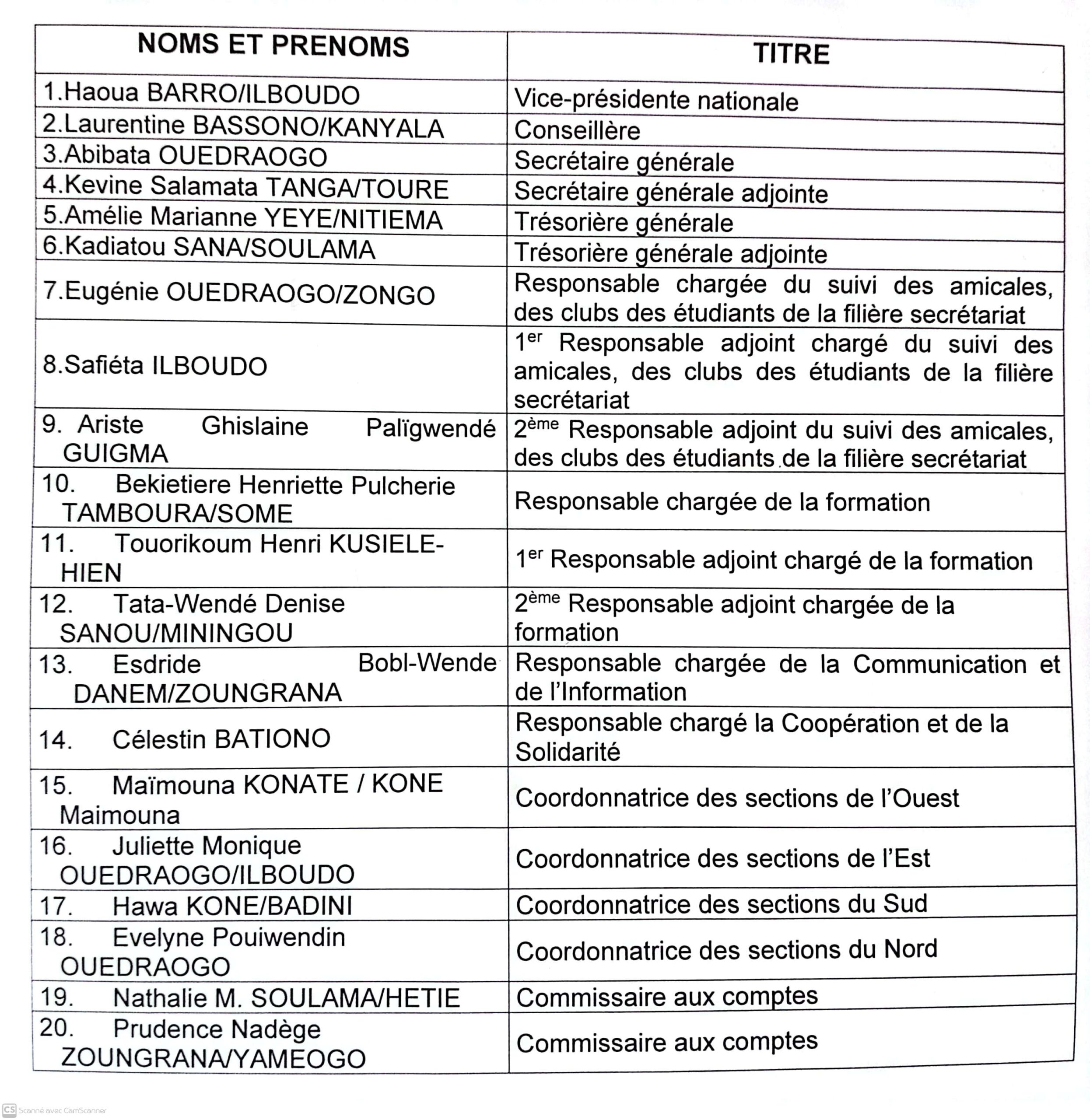 Liste des membres du nouveau bureau de l’APSB⤵️⤵️⤵️