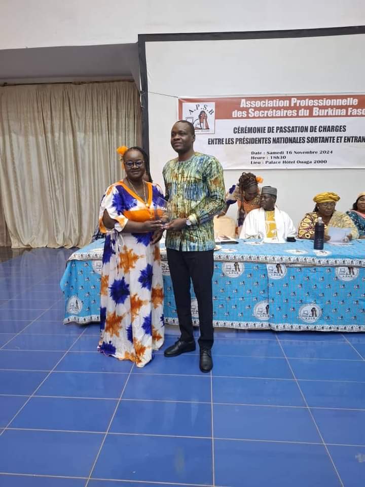 Assétou Dabiré est la nouvelle présidente nationale de l’Association professionnelle des secrétaires du Burkina Faso (APSB). Elle remplace à ce poste Elisabeth Savadogo. La cérémonie de passation des charges s’est tenue dans la soirée du 16 novembre 2024 à Ouagadougou. Elle est placée sous la présidence du Directeur général de CIF Assurances Vie, Daouda Sawadogo.