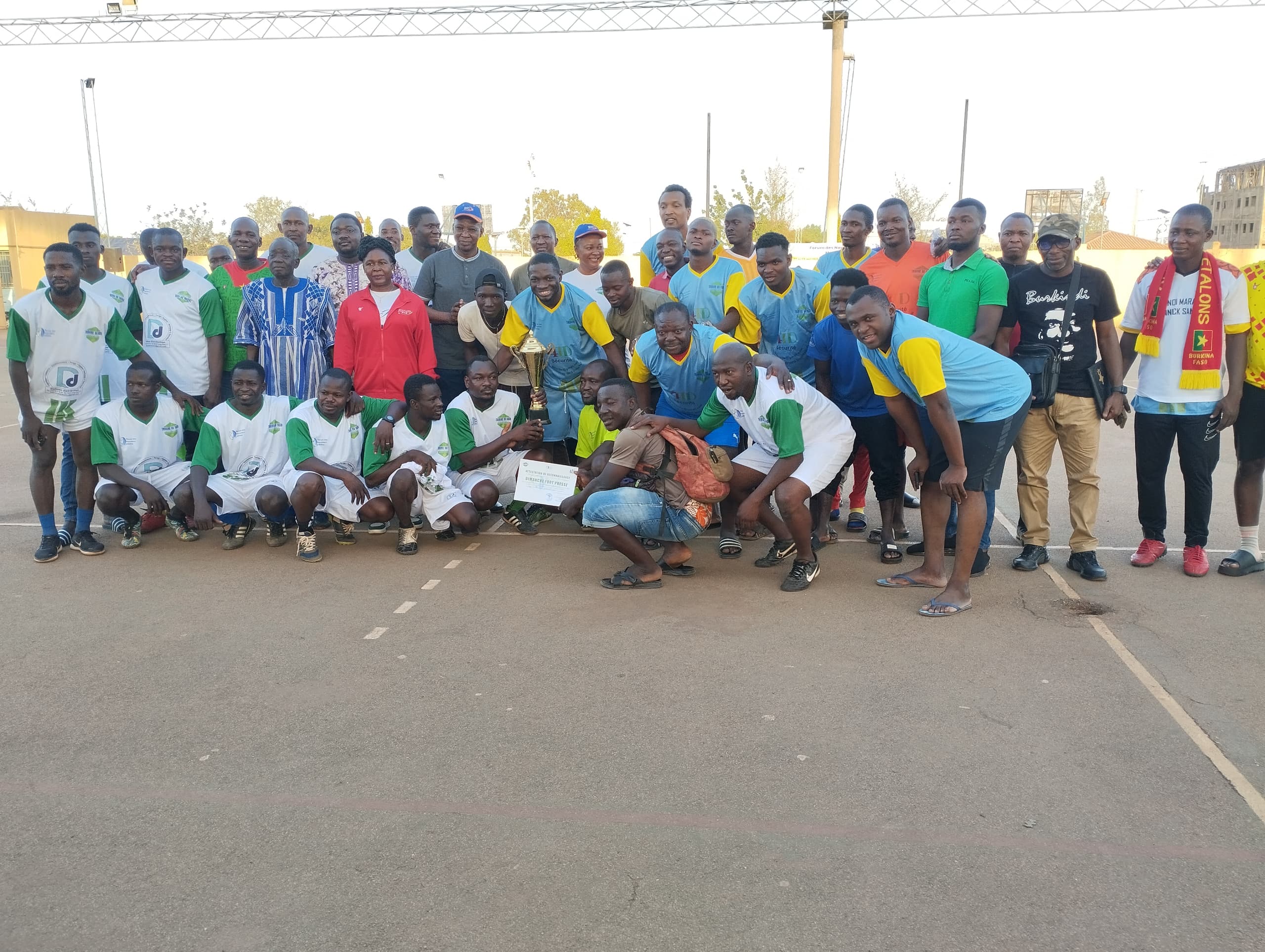 Ce match a opposé l’équipe de Bassemyam dimanche matin (maillot blanc) à celle de Dimanche foot presse (maillot bleu). Après 40 minutes de jeu et une séance de tirs au but, c’est l’équipe de Dimanche foot presse qui est sortie vainqueure par un score de 2-0.