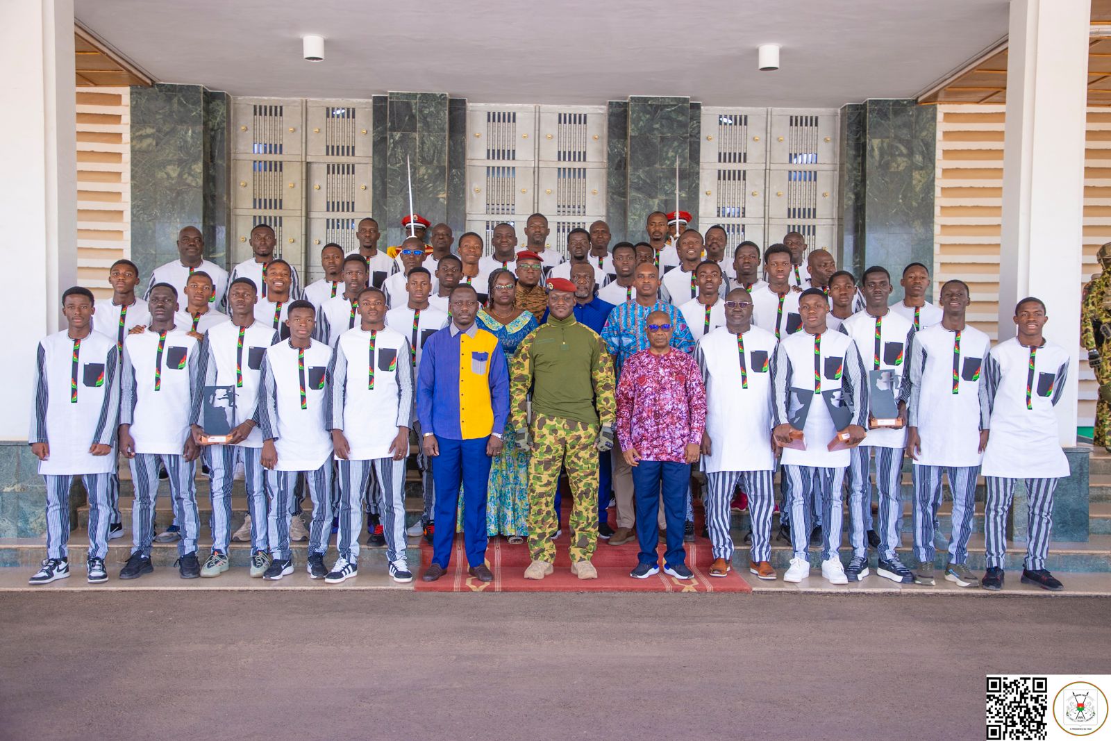 Le Président du Faso, Chef de l’État, le Capitaine Ibrahim Traoré a reçu en audience les Étalons U17, le 22 avril 2025 à Ouagadougou, au Palais de Koulouba. Il s’est agi pour le Chef de l’État de féliciter cette équipe nationale pour son parcours au Maroc, quoiqu’on dise, honorable et d’encourager ces jeunes « pousses » pour les défis futurs.