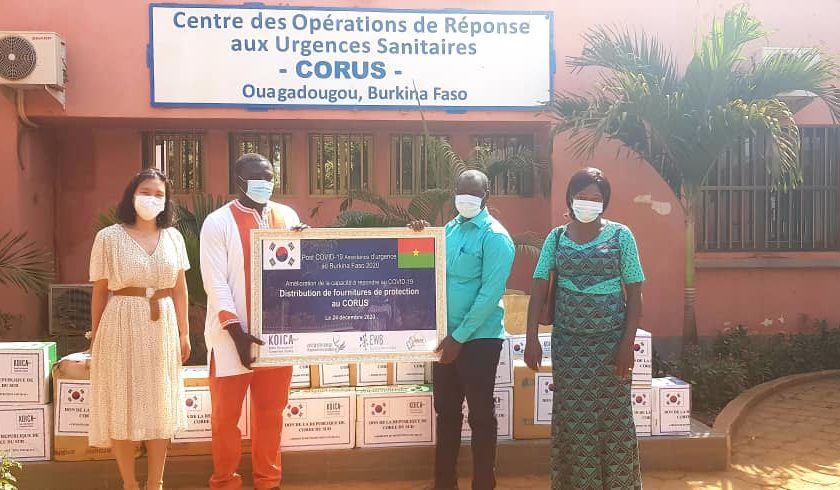 Educators without borders Burkina (EWB-Burkina) avec sa structure d’accompagnement technique, l’Association pour la promotion de l’éducation non formelle au Burkina (APENF-Burkina), ont symboliquement remis du matériel et de l’équipement de protection contre la pandémie de Covid-19 au Centre des opérations de réponse aux urgences Sanitaires (CORUS) ce jeudi 24 décembre 2020. C’était au cours d’une cérémonie tenue audit Centre, et en présence du partenaire Korea international cooperation agency (KOICA).