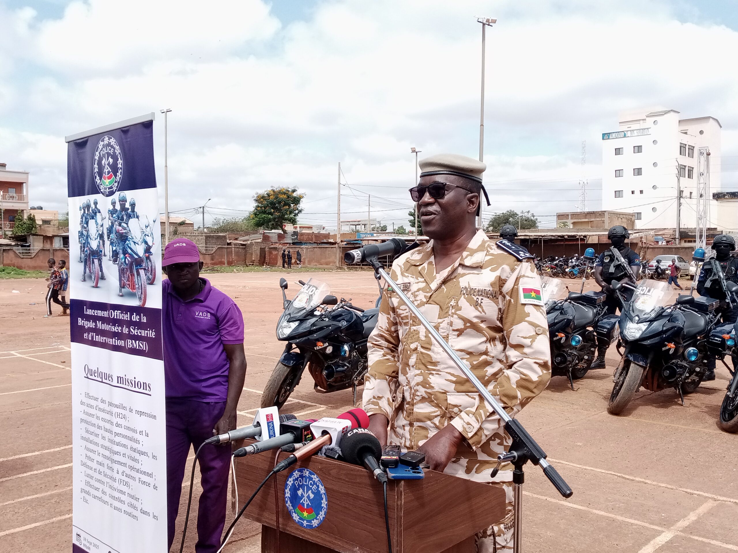 Le Directeur général de la Police nationale, l’inspecteur général de Police Thierry Tuina a procédé, ce 10 septembre 2025 à Ouagadougou, au lancement officiel de la Brigade motorisée de sécurité et d’intervention (BMSI). Cette initiative vise à renforcer la sécurité des citoyens, en pourchassant et en arrêtant les criminels qui opèrent à bord des engins à deux roues. Pour contacter la BMSI, les numéros d’urgence 17 et 1010 sont à la disposition de la population.
