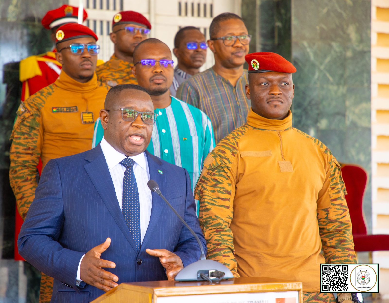 « Nous sommes frères, nous ne pouvons pas être divisés. Ma visite est un geste de solidarité, pour montrer au Président et au peuple du Burkina Faso qu’ils ne sont pas seuls. Nous ferons tout notre possible pour que la paix revienne dans ce pays », déclare le Chef d’État de la Sierra Leone.
