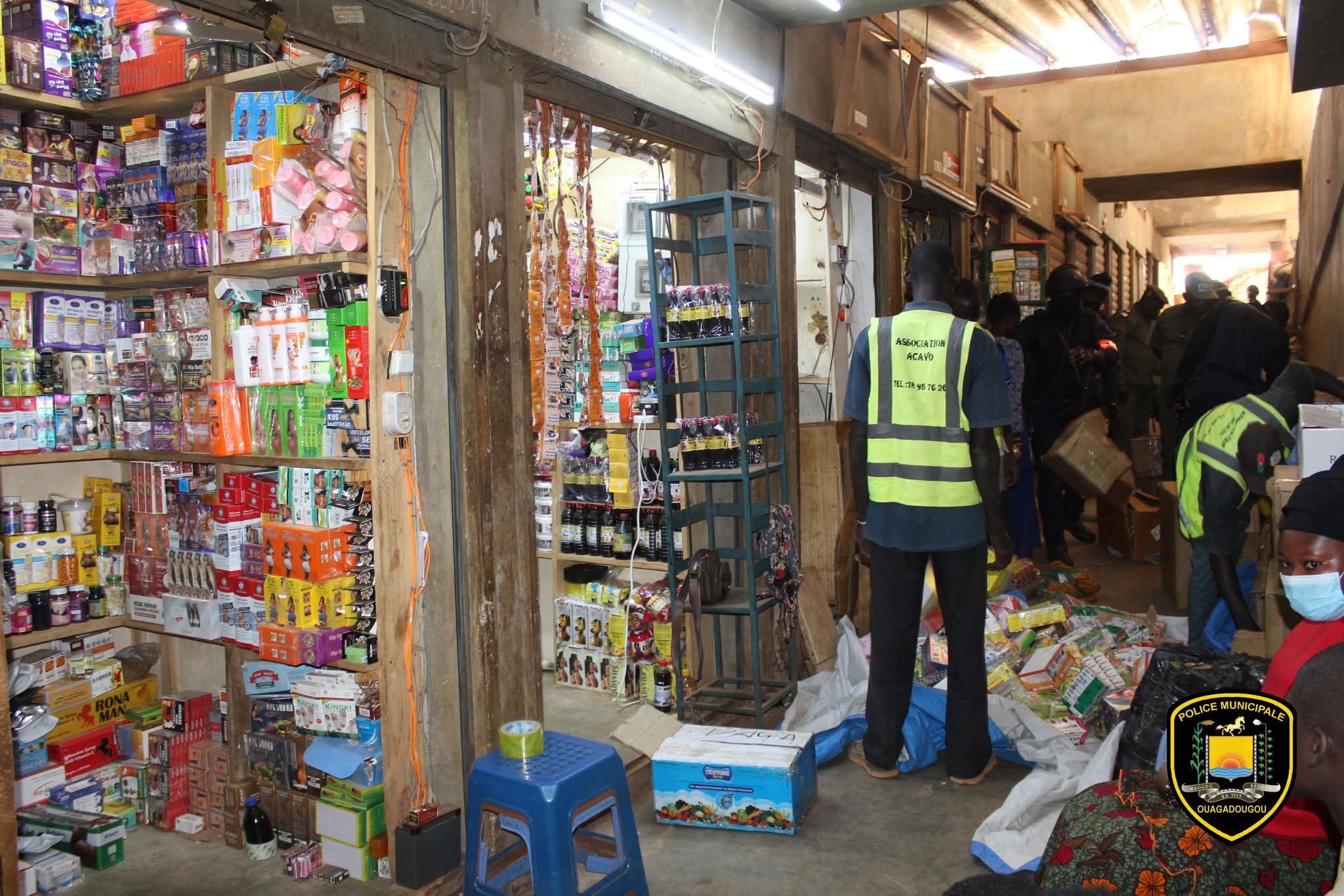 Dans le cadre de ses missions de sécurisation des infrastructures marchandes de la ville de Ouagadougou, la Direction de la Police des Services Marchands (D.P.S.M.) de la Direction Générale de la Police Municipale de Ouagadougou a mené le 05 novembre 2025, une opération de saisie de produits pharmaceutiques prohibés au Marché Central ROOD-WOKO.