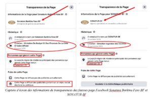 En ce qui concerne la fausse page SONATUR-Bf, elle a été créée le 15 septembre 2025 sous le nom « Direction togolaise des recettes » avant de devenir un peu plus d’un mois plus tard « SONATU-Bf ». D’après les données de transparence de Facebook, cette page est gérée par trois personnes toutes géolocalisées au Cameroun.