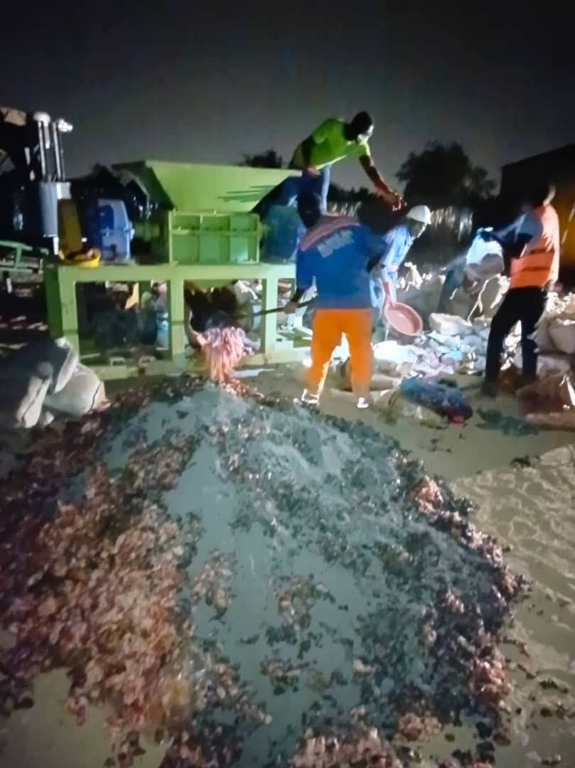 Conformément aux directives des plus hautes autorités du Ministère, dans le cadre de l’Offensive agropastorale et halieutique 2023-2025, les produits illégalement importés n’ont pas été incinérés, mais broyés pour être transformés en engrais au profit de la production agricole.