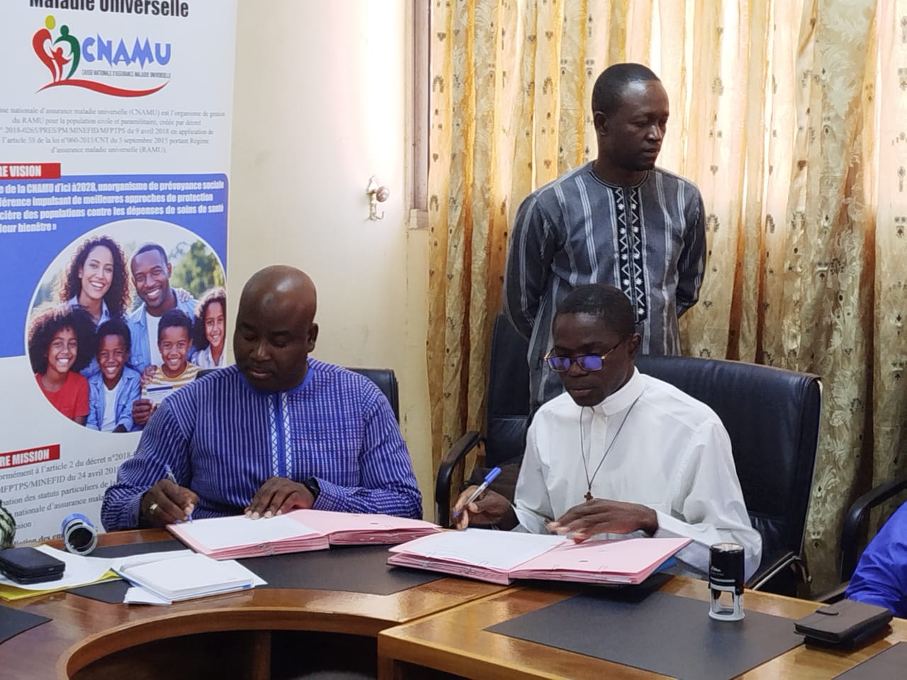 La Caisse nationale d’assurance maladie universelle (CNAMU) a procédé, ce 30 janvier 2026 à Ouagadougou, à la signature de conventions avec des établissements privés de santé, dans le cadre de l’opérationnalisation du Régime d’assurance maladie universelle (RAMU). La cérémonie a été présidée par le ministre des Serviteurs du peuple, Mathias Traoré, représenté par son directeur de cabinet, Emmanuel Sorgho.