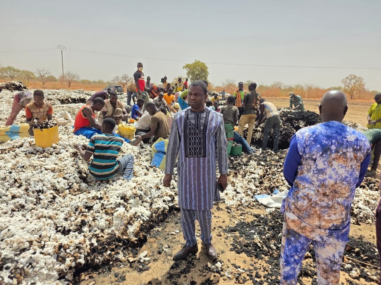 Selon les évaluations techniques, ce sont environ 5 tonnes de coton qui ont été réduites en cendres lors de l’incendie survenu le 20 février 2025. Le stock restant au moment du drame était de 118 tonnes, sur une production initiale de 147 tonnes (dont 29 tonnes avaient déjà été évacuées).