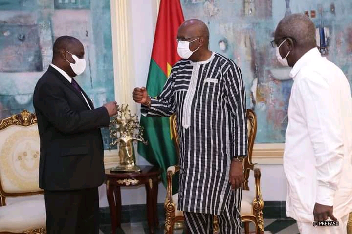 Le président du Faso, Roch Kaboré, a reçu en audience, ce lundi 10 mai 2021, au palais de Kosyam, le ministre ivoirien en charge de la défense, Téné Birahima Ouattara. L’hôte, à sa sortie d’audience, a coanimé avec son homologue burkinabé, Chériff Sy, un point de presse.