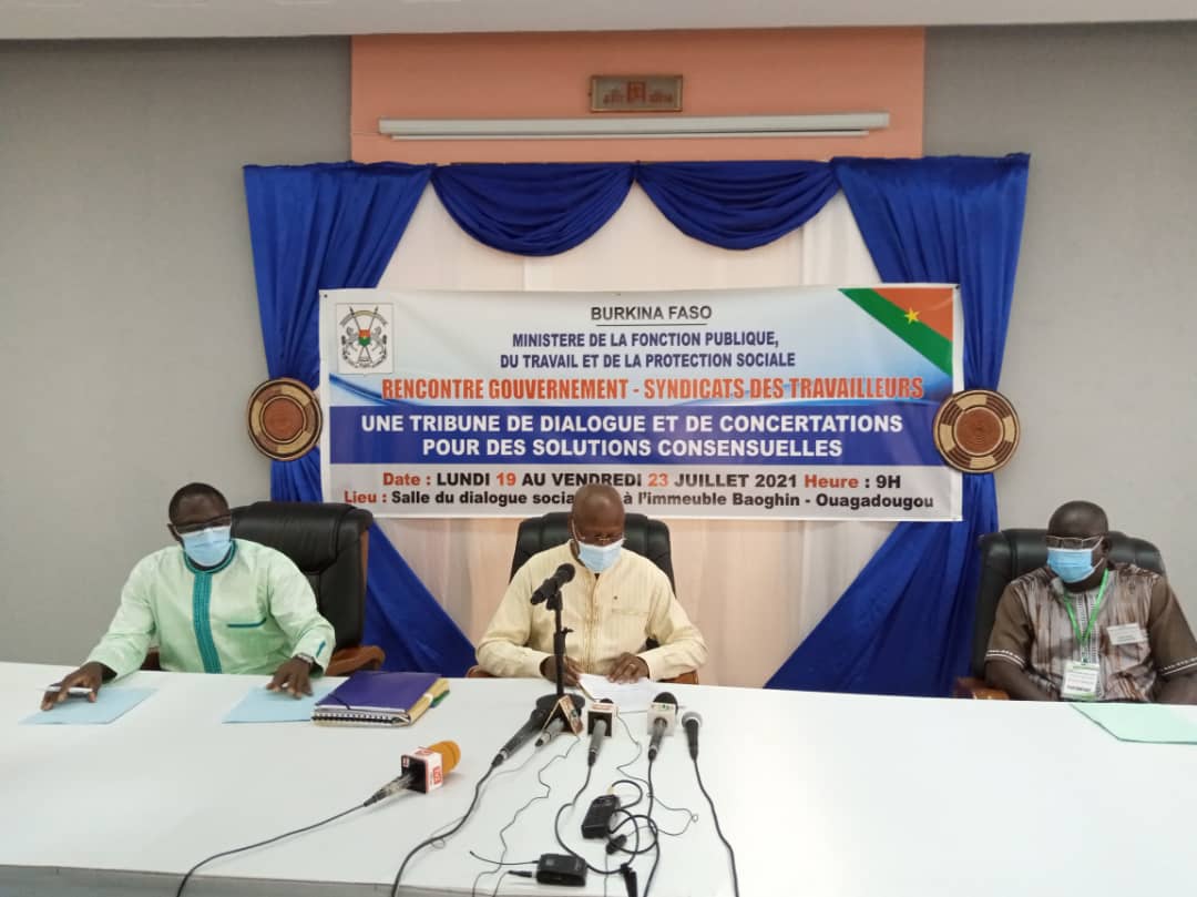 Du 19 au 23 juillet 2021 se tiendra, à Ouagadougou, la rencontre gouvernement-syndicats à l’effet de statuer sur le cahier de doléances 2017-2021 des syndicats des travailleurs. La cérémonie officielle d’ouverture des travaux de ladite tribune de dialogue et de concertations est intervenue ce lundi 19 juillet 2021 sous la présidence du Premier ministre, chef du gouvernement, Christophe Dabiré.