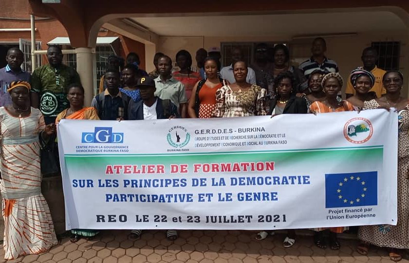 Financé par l’Union européenne à travers sa délégation au Burkina Faso, ce projet est mis en œuvre par un consortium de trois organisations de la société civile burkinabè, notamment le Groupe d’études et de recherche sur la démocratie et le développement économique et social au Burkina Faso (GERDDES-Burkina), le Centre pour la gouvernance démocratique Burkina Faso (CGD) et l’Association d’appui et d’éveil pugsada (ADEP). Pour Somda Asseghna, chargé de programme au CGD (formateur), cette formation vise à renforcer les capacités d’un certain nombre d’acteurs majoritairement des femmes dans le cadre du leadership féminin. C’est ainsi que des modules qui portent sur la démocratie participative, la participation politique des femmes, le genre ont été développés. Cela en présence du Vice-président du GERDDES-Burkina Boureima Savadogo et de Simon-Pierre Doamba, chargé d’étude au CGD.