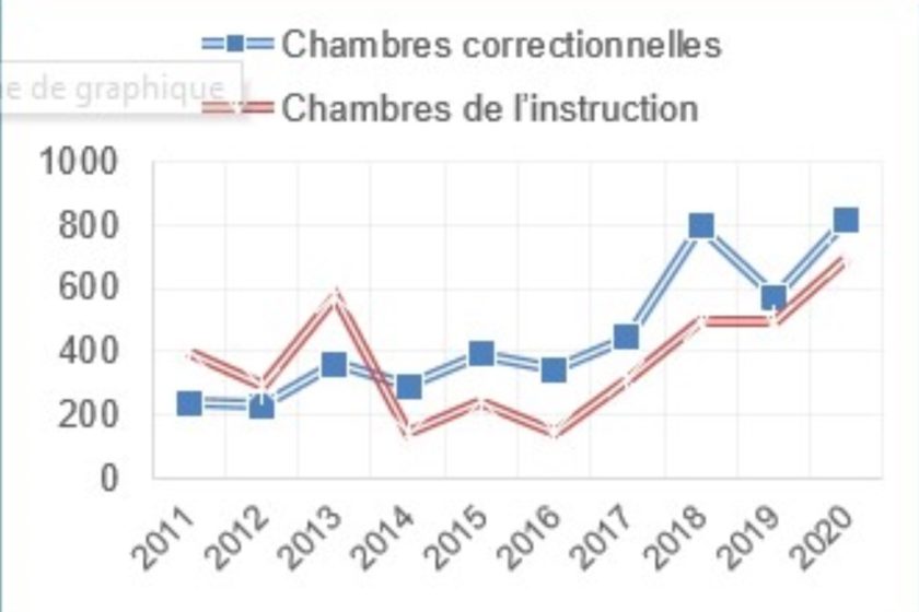 Les Chambres de l’instruction ont rendu 406 décisions en 2020 contre 605 en 2019, soit une baisse de 32,9%. Ces décisions sont principalement des renvois en Chambre criminelle et des libertés provisoires représentant respectivement 42,9% et 40,9% de l’ensemble des décisions. Les Chambres pour mineurs n’ont rendu aucune décision en 2020. Les Chambres criminelles, quant à elles, ont rendu 209 décisions en 2020 contre 107 en 2019, soit une augmentation de 95,3% malgré le fait que la Chambre criminelle de la Cour d’appel de Bobo-Dioulasso n’a pas rendu de décisions. Parmi ces décisions des Chambres criminelles, 84,7% sont des condamnations ; 9,1% des acquittements ; 5,3% des prescriptions et 1% des décisions d’incompétences ou autres.
