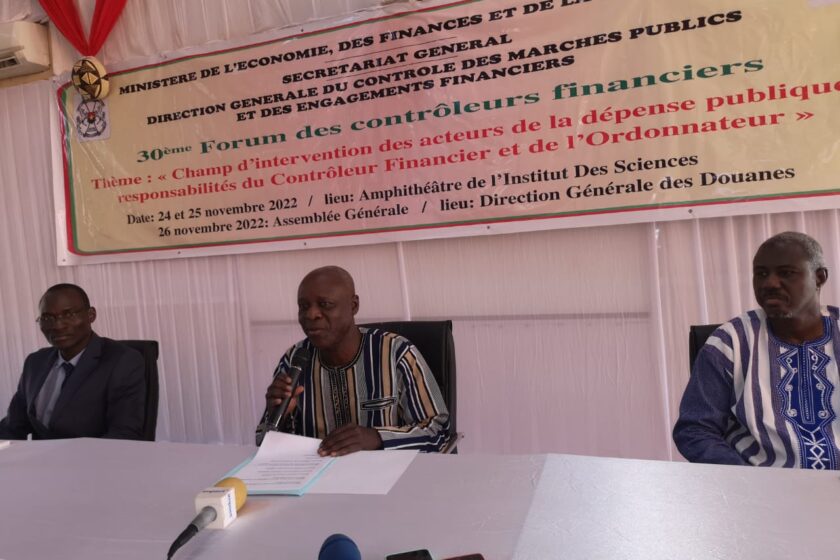 Dans le cadre du 30 ème forum des contrôleurs financiers, les acteurs de la dépense publique du Burkina Faso se réunissent du 24 au 25 novembre 2022 à Ouagadougou. Les travaux du forum ont débuté ce 24 novembre autour du thème « Champ d’intervention des acteurs de la dépense publique : responsabilités du Contrôleur Financier et de l’Ordonnateur ».