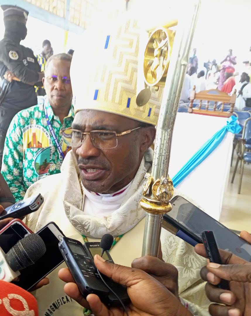 « Sel et lumière pour le monde . » Cette phrase a été le maître mot de Gabriel Sayaogo au moment de son prêche. Pour l’évêque, Jésus est citoyen d’un pays comme ses disciples. Comme ses disciples il vit dans un monde violent, un monde où la facilité tend à prendre le dessus sur l’effort à fournir, un monde où le paraître devient l’objectif premier de certains, un monde où des valeurs qui étaient immuables sont remises en question. En dépit de ce climat général, le Christ semble ne laisser aucune excuse à ses disciples. Ces derniers doivent avoir la conduite d’un homme de béatitudes, c’est à dire un homme exemplaire, qui respecte les valeurs de le société où il vit, et c’est en cela être « sel et lumière pour le monde. » « Pour Jésus, cependant, telle doit être la réalité de leur existence, tel doit être leur comportement : être sel et lumière. Dans leurs relations avec les autres, ils doivent être doux, miséricordieux, des artisans de paix, des promoteurs de justice, de cohésion, d’un vivre ensemble harmonieux, sans hypocrisie et sans malice. Les disciples doivent encore être des exemples de vertus, de loyauté, de probité, de Sainteté et de rigueur. Ce sont là les signes distinctifs des disciples du Christ et c’est en cela qu’ils sont sel et lumière pour le monde. » A- il prêché avant d’ajouter qu’ Être chrétien c’est être un autre christ, incarner en soi les mêmes sentiments que ceux de Jésus Christ, être un exemple d’enthousiasme, de courage, d’abnégation, de civisme, de discipline et être amoureux du travail bien fait.
