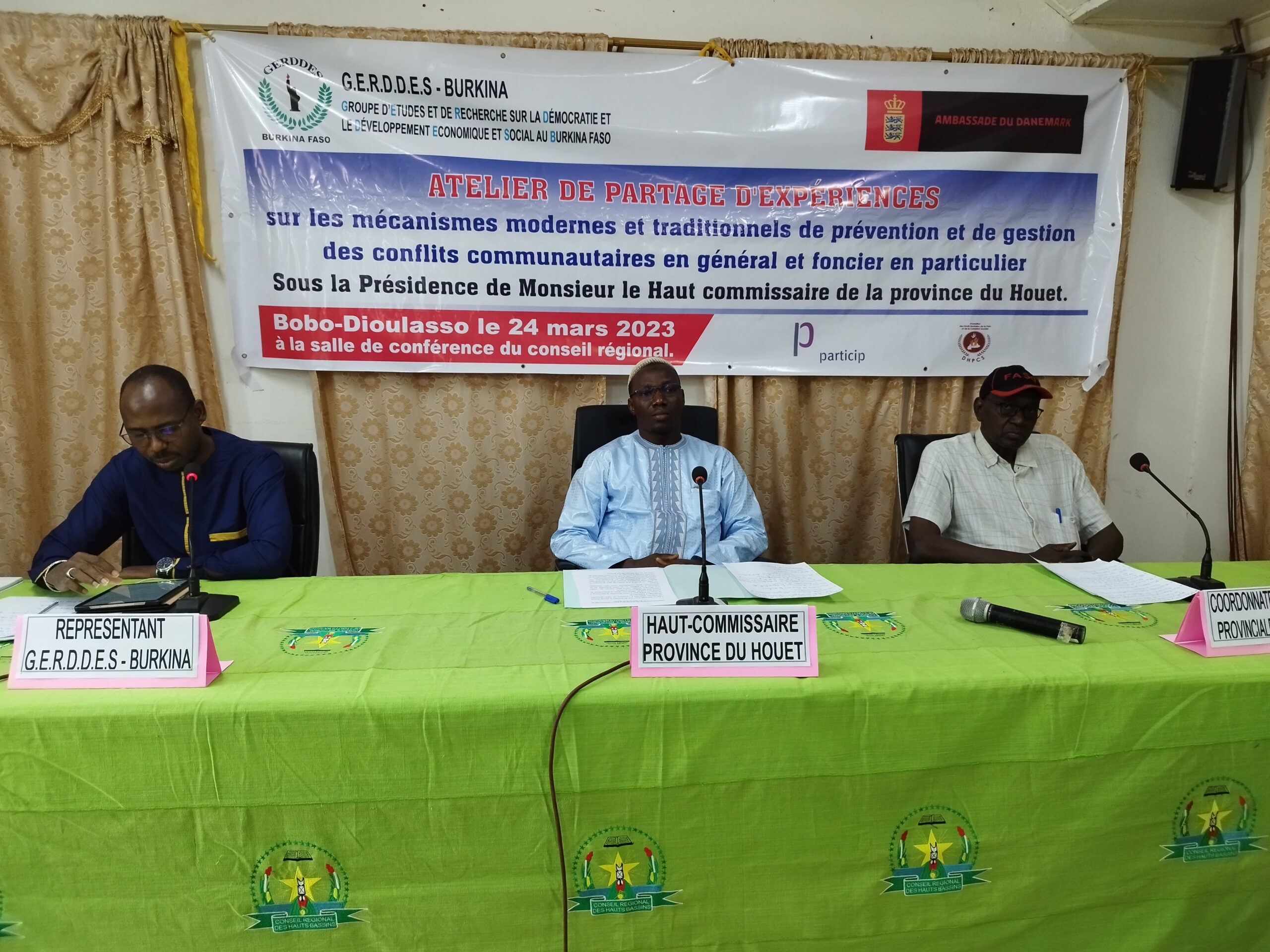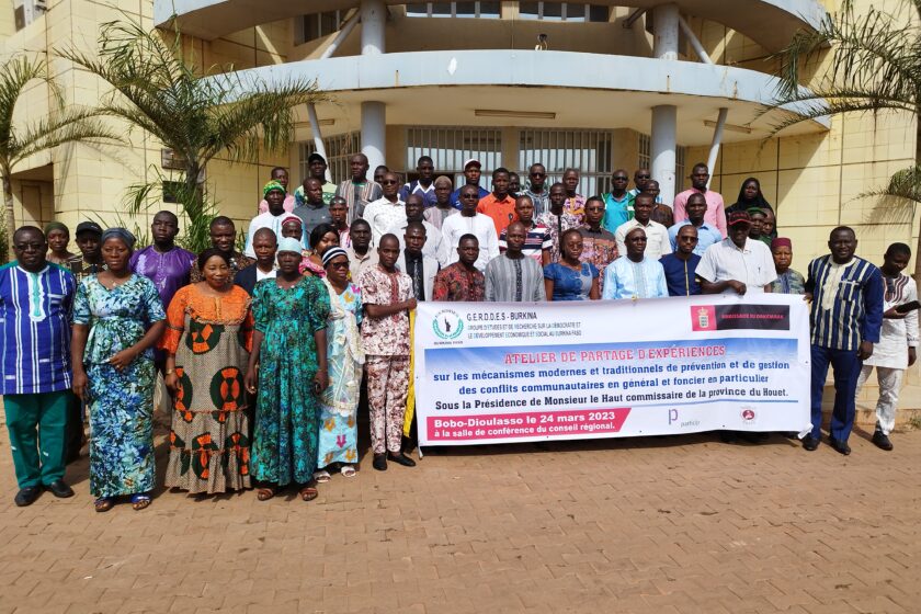 Le Groupe d’étude et de Recherche sur la Démocratie et le Développement économique et social (GERDDES) au Burkina Faso a organisé ce vendredi 24 mars à Bobo-Dioulasso, un atelier de partage d’expériences sur les mécanismes modernes et traditionnels de prévention et de gestion des conflits communautaires en général et fonciers en particulier. Les travaux ont eu pour cadre la salle de conférence du Conseil régional des Hauts-Bassins.