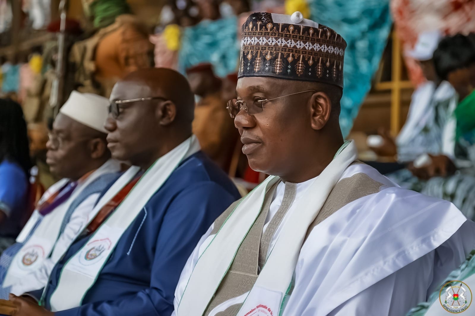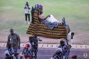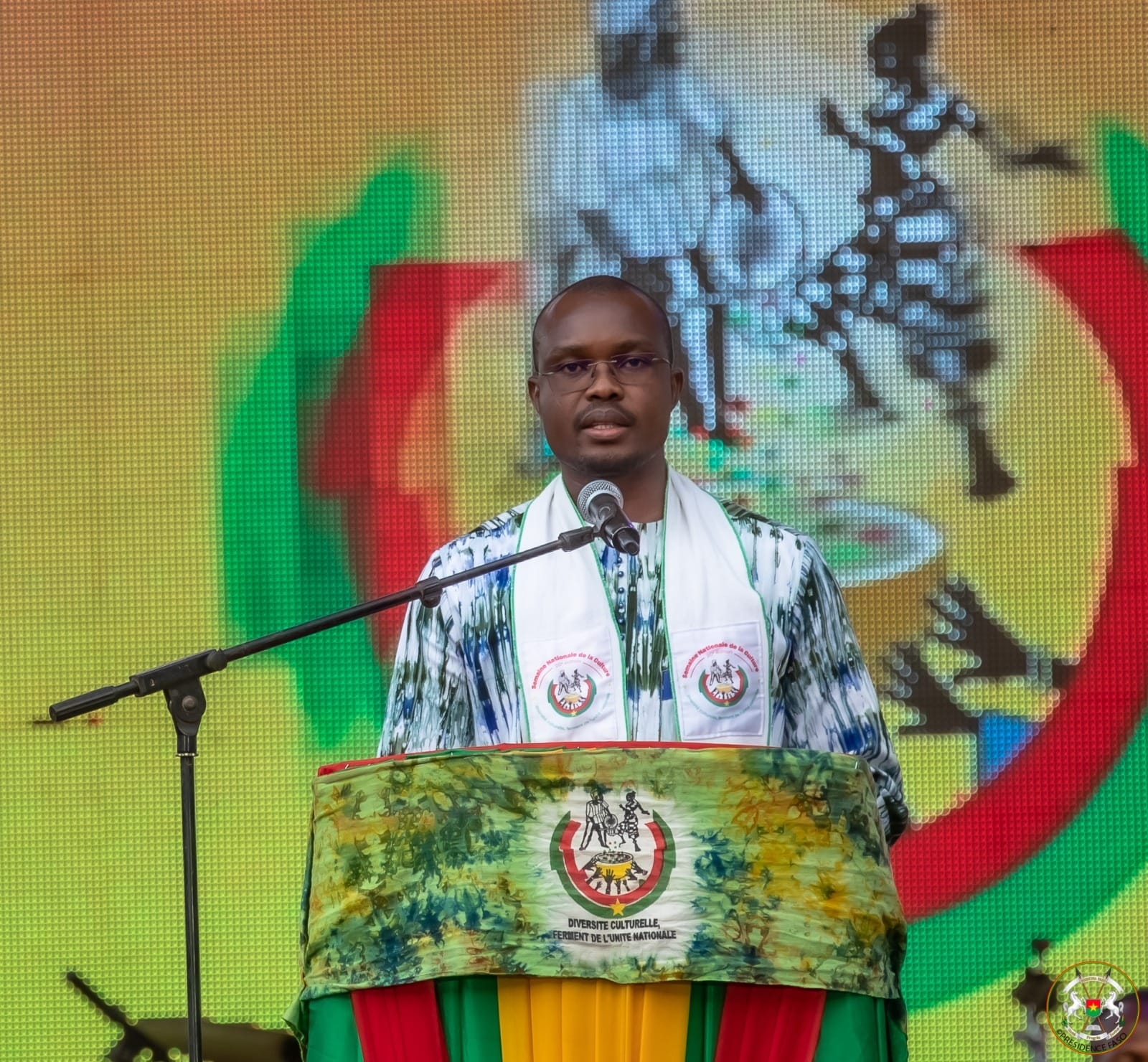 C’est vers 16h que le cortège présidentiel fait son entrée au stade omnisport Général Aboubacar Sangoulé Lamizana. Après avoir fait le tour d’honneur à pas de course, sous les acclamations du public, le capitaine Ibrahim Traoré prend place dans la tribune officielle. Discours, prestations artistiques, parade des masques et des délégations des différentes régions, c’est ce qui a été servi au public venus pour célébrer et magnifier la culture burkinabè sous le thème : « Diversité culturelle, fermant de l’unité nationale ».