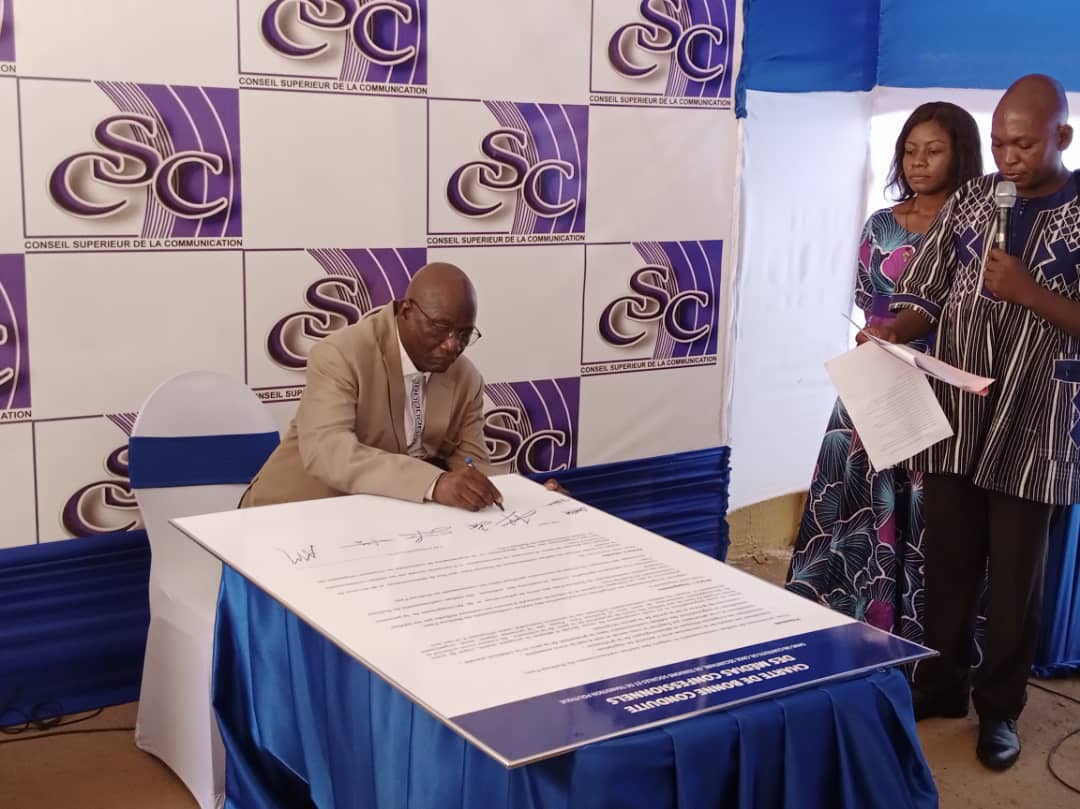 Le conseil Supérieur de la Communication (CSC), a procédé ce mardi 13 juin 2023 à Ouagadougou, à la présentation d’ un guide de gestion des contenus médiatiques à caractère confessionnels dans les médias confessionnels et non confessionnels ainsi qu’à la signature d’une « charte de bonne conduite des médias dans un contexte de crise sécuritaire, de tensions sociales et de transitions politiques ».