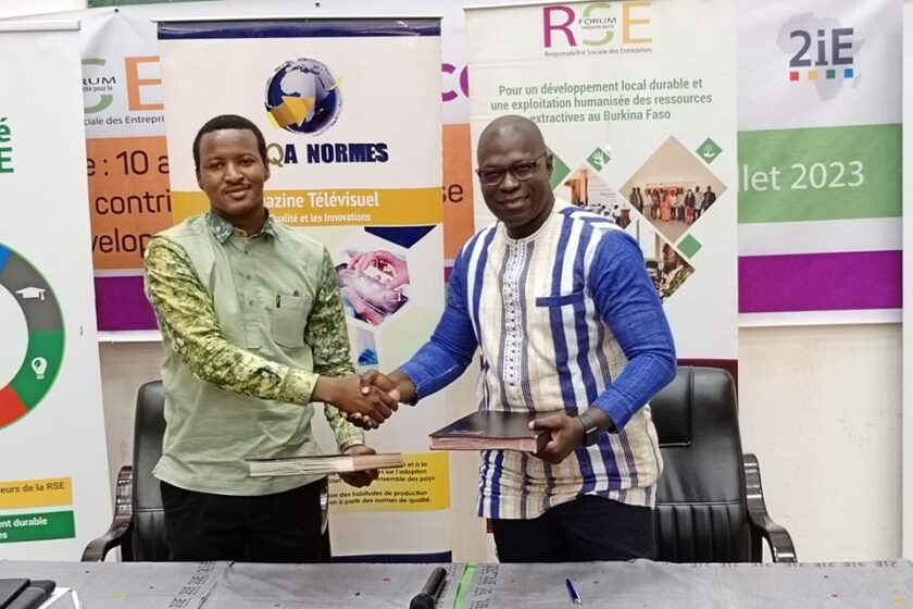 Le Président du Forum RSE, Kalid KERE et l’Administrateur général du Group Improve, Raul Gautier BERE ont signé une convention de partenariat visant la promotion du développement durable. C’était dans la matinée du jeudi 20 Juillet à Ouagadougou, en marge de la 8e édition du café RSE.