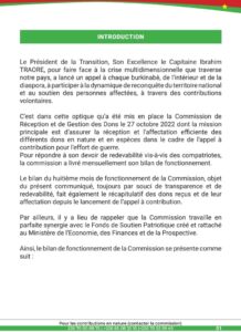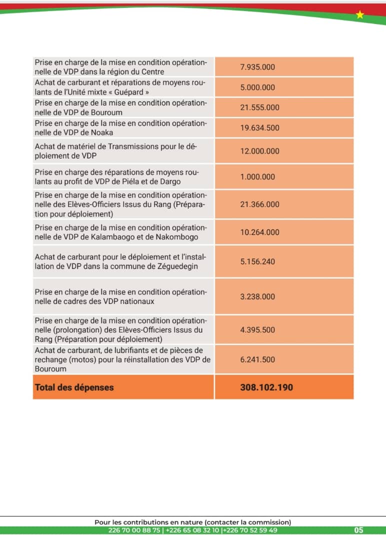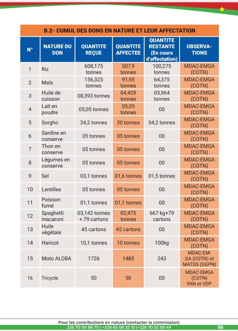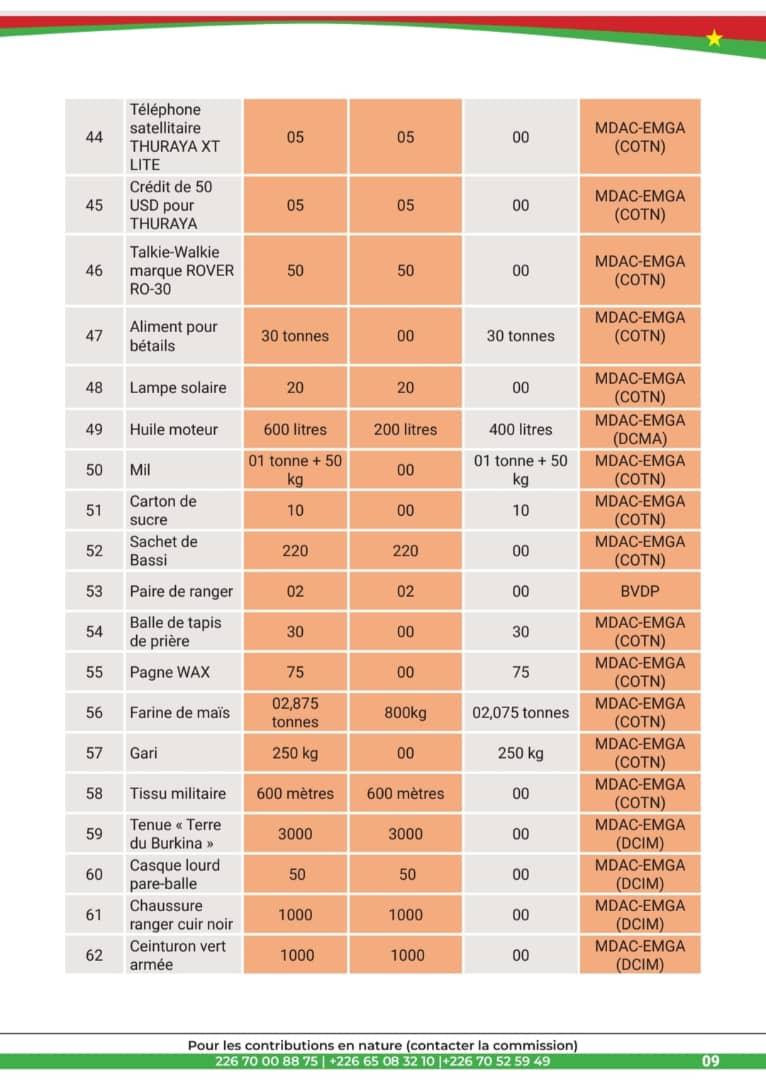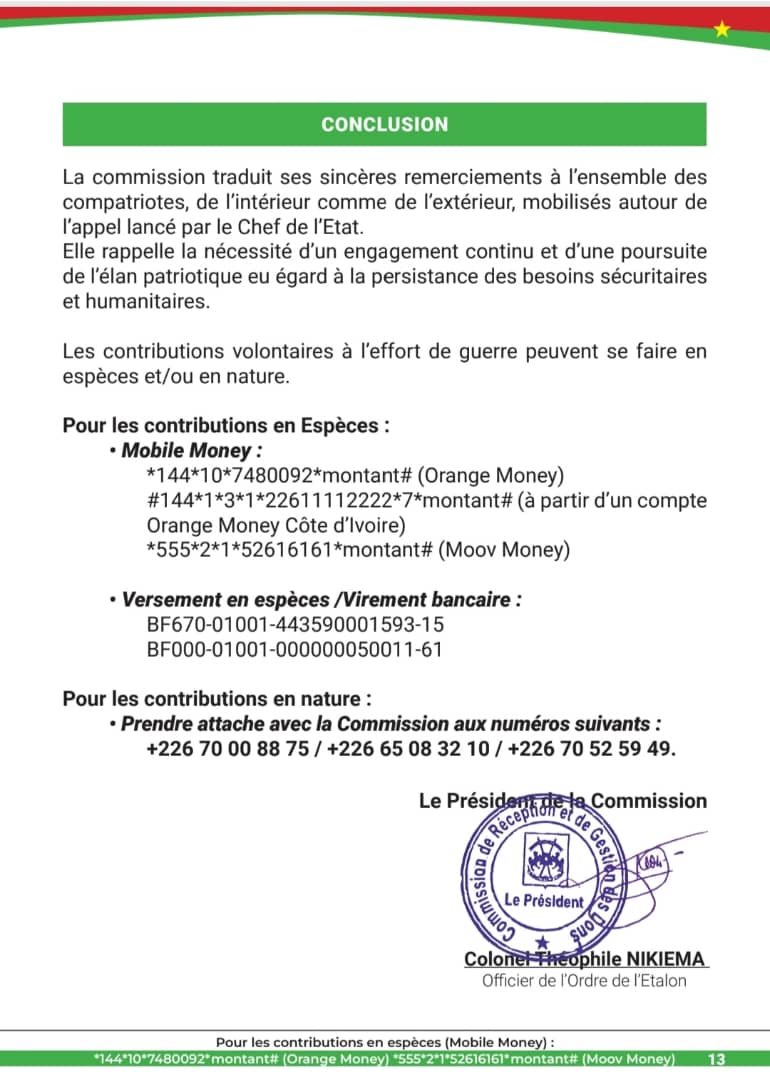 Pour les contributions en nature , prendre attache avec la commission aux numéros +226 70 00 88 75 / +226 65 08 32 10 / +226 70 52 59 49.