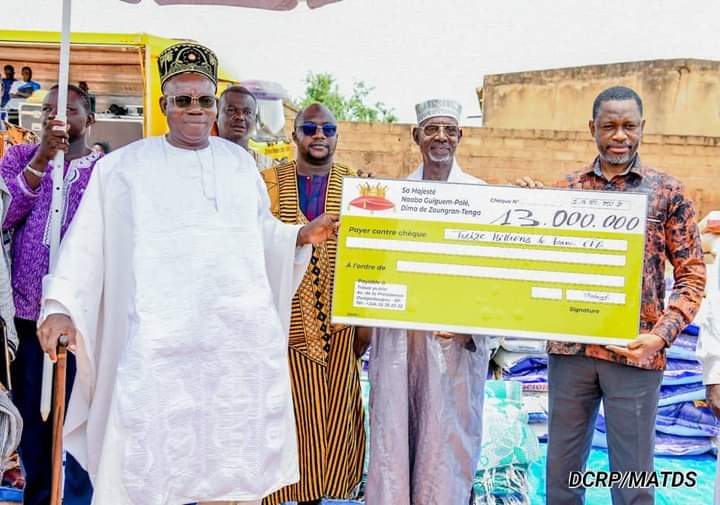 D’une valeur globale de 26 258 500 FCFA, le don est composé d’un chèque de 13 000 000 FCFA, 10 tonnes de riz, 20 cartons d’huile, 10 sacs de sel. Aussi, de 100 nattes, 05 cartons d’huile à moteur et 01 forage de 22 m3 équipé.